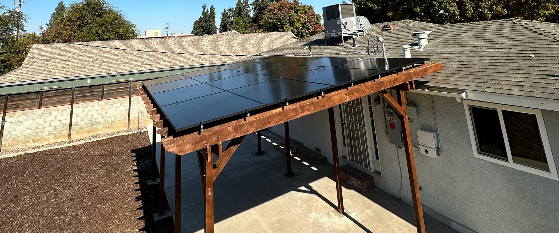 A solar patio turns unused yard space into a structure that provides shade while producing electricity for your home. Instead of placing all panels on the roof, we build a purpose-designed patio cover that generates power and creates a comfortable outdoor area you can use year round.